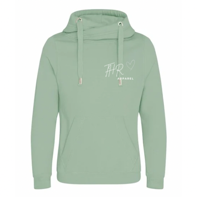 Premium heavyweight hoodie with a cross over neck detail and thumb holes in the cuffs.
