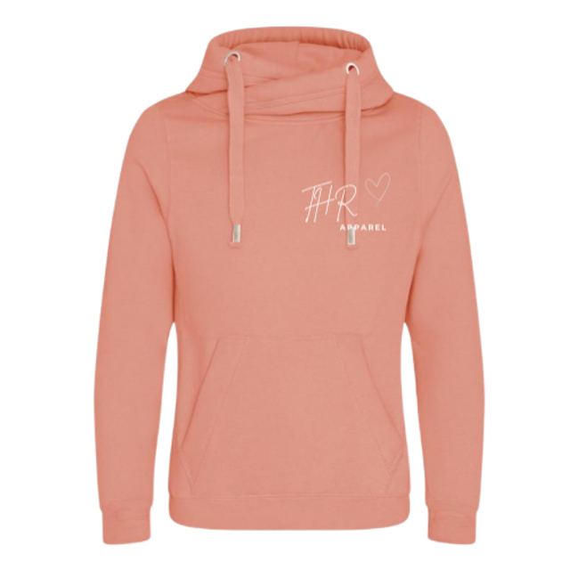 Premium heavyweight hoodie with a cross over neck detail and thumb holes in the cuffs.