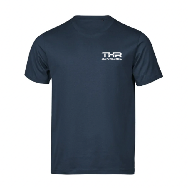 Premium heavyweight organic cotton luxury T-Shirt with THR Apparel on front and vinyl printed slogan on black